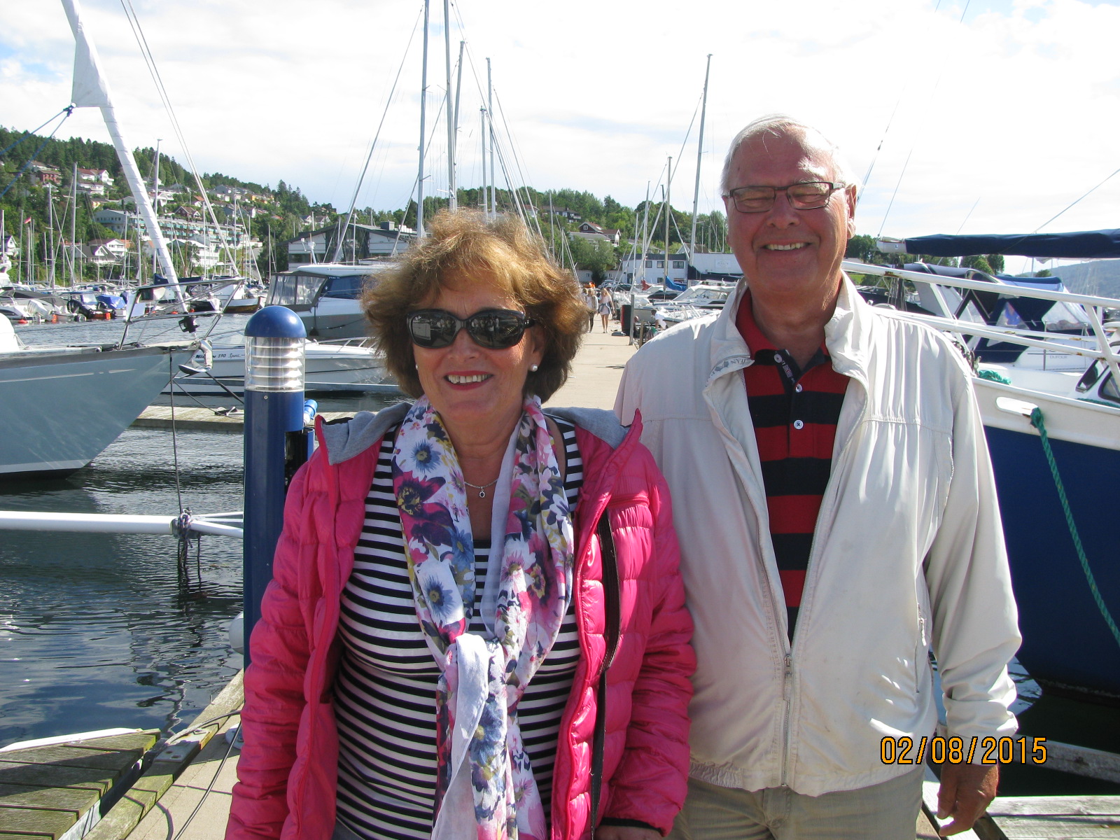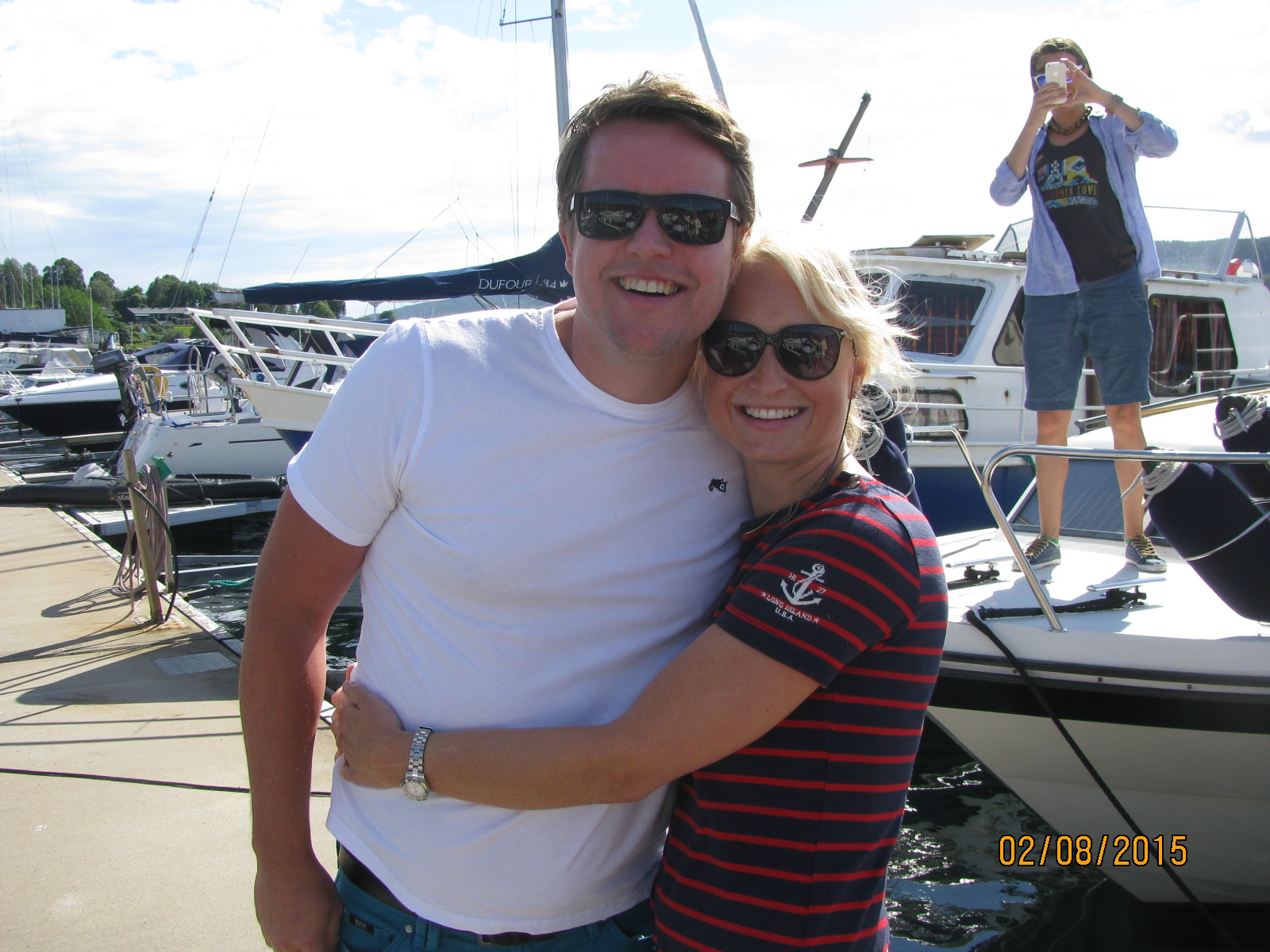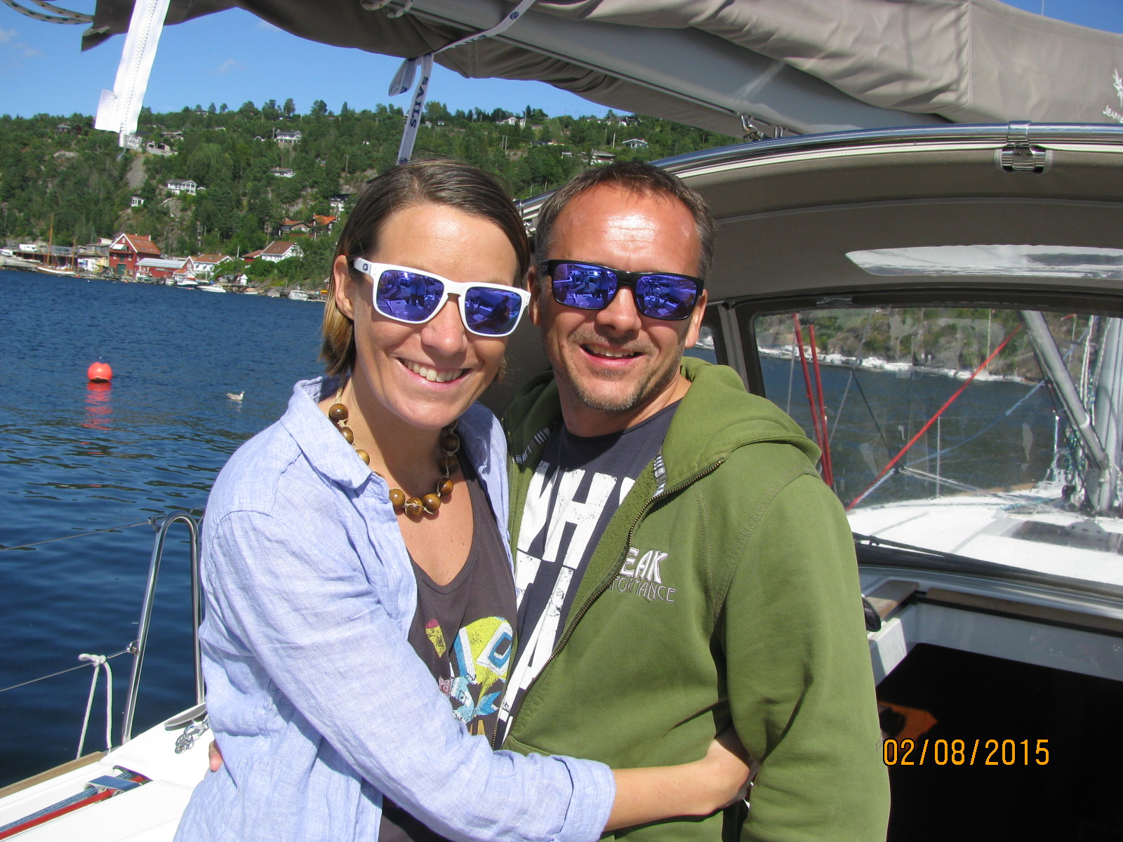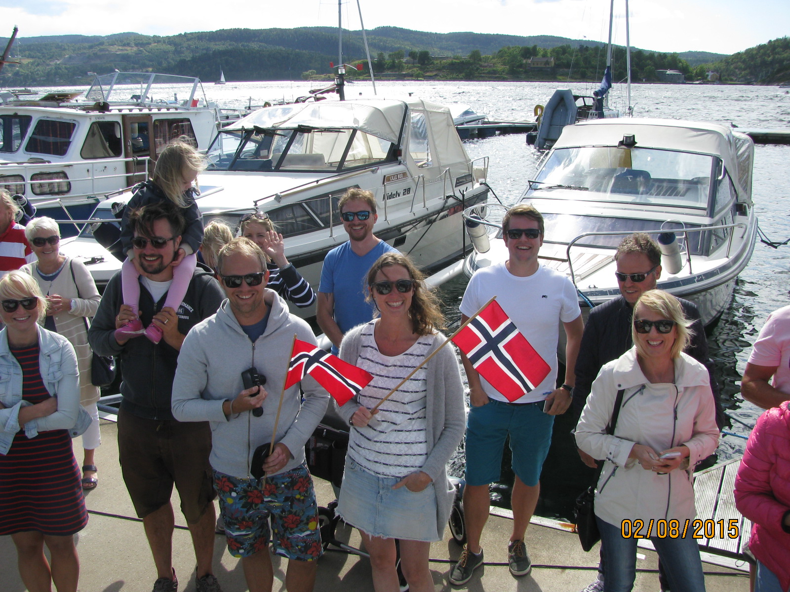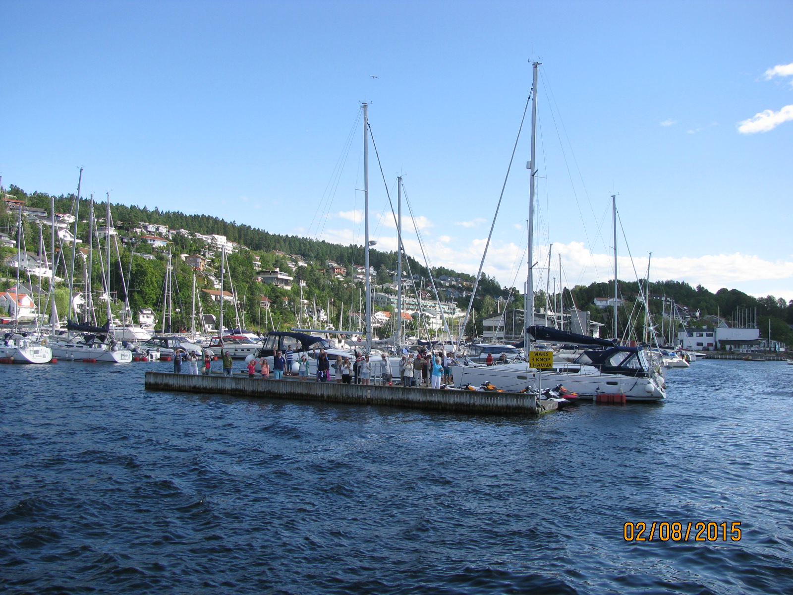 Også stod de der da, på brygga og ønsket oss all lykke i hele verden! 🙂 Vi griner og gleder oss på vei ut Oslofjorden, og meldinger fortsetter å komme i massevis, vi er heldige vi.