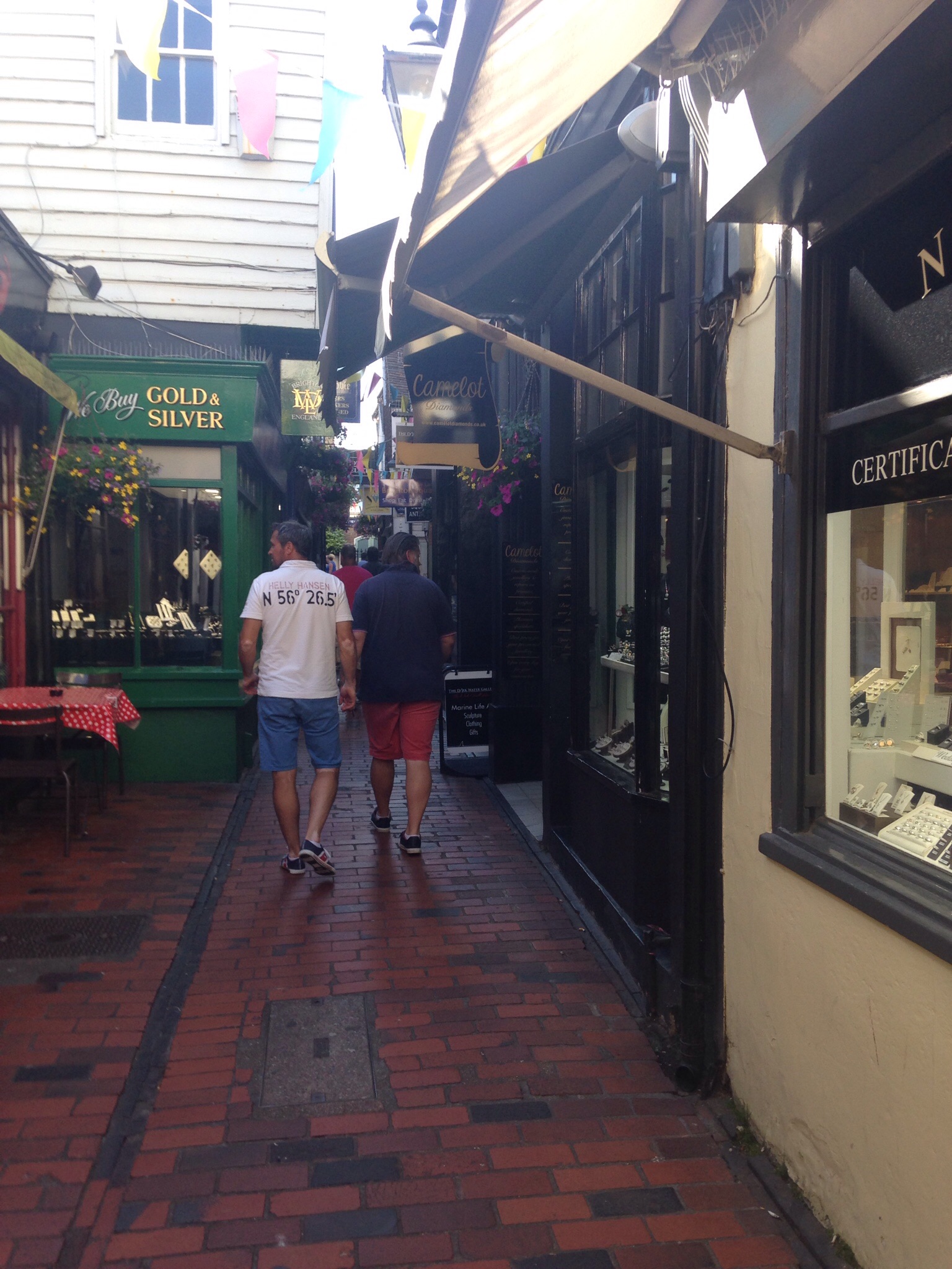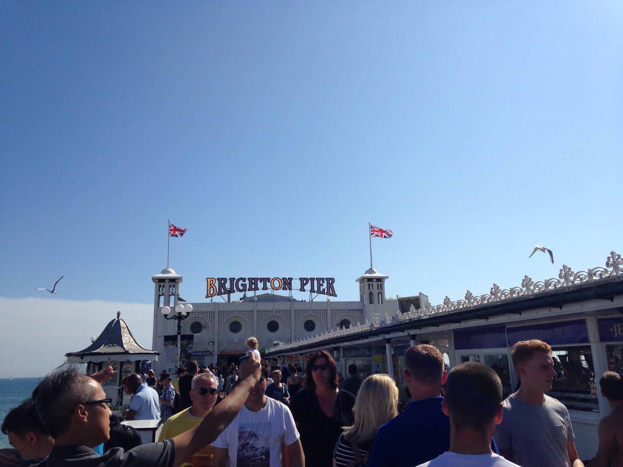 Dagen vi kom til Brighton var varm og god, og det var god stemning i havna og i byen, vi hadde testet stormfokk på veien og solt oss i glansen fra «the white cliffs of Dover». The Lanes var utrolig fint med mange spistesteder og pub’er, og Tamaras mannskap storkoste seg i sola. Vi fikk oss også en tur på Brighton Pir; tivoli og turistfelle på samme sted, det ble med en øl og noen bilder, før vi ruslet tilbake «på land».